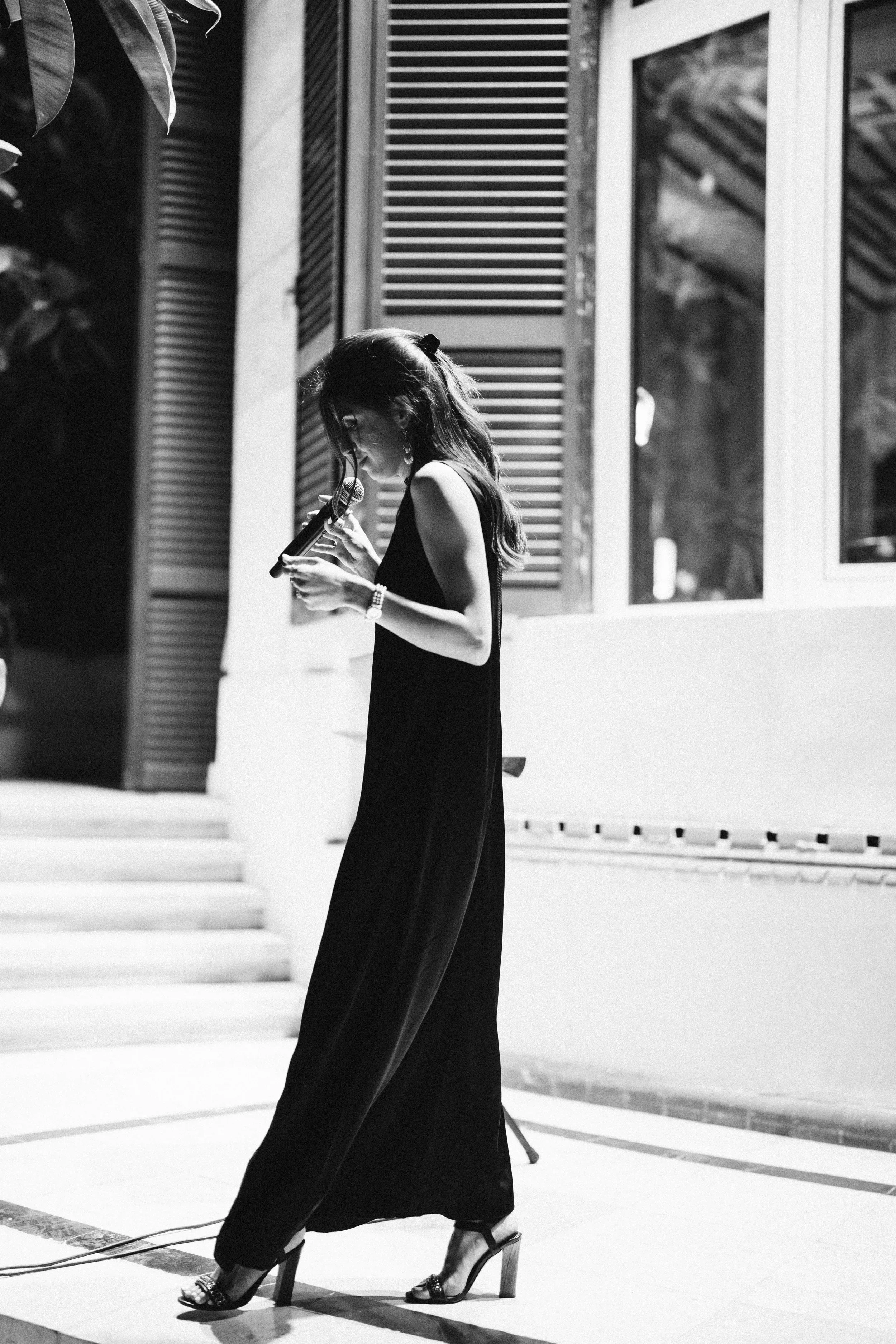 We started off the evening in the garden where guests were serenaded by the sultry sounds of Nathalie Bichara as they enjoyed a tailored cocktail menu curated by Hummingbird. Both the setlist and the drinks reflected the theme, with a mix of Italian and Egyptian songs as well as signature national drinks like negroni and hibiscus sour. Inside, the final touches were underway. Atop Egyptian linen tablecloths, at the center of each table, stood a 3D-printed model of prominent Italian architecture embedded within whimsical bouquets of white and green florals.