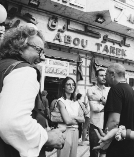One of my favorite moments came during the walk itself, after the map design had been submitted. Our first featured stop, ‘El Gomhoreya’ roasterie, known for its stuffed pigeon, refused to let us walk in with our 20 guests. A few tempered back and forths later, we found ourselves hungry and agitated on a sidewalk on Hoda Shaarawi St.. A block down, we came across a hole-in-the-wall sandwich shop called Kiosk Sameh, where the menu is bespoke: it caters each sandwich to the customer’s favorite flavor profiles, and the most appealing sandwiches make it to the wall where a permanent menu resides.