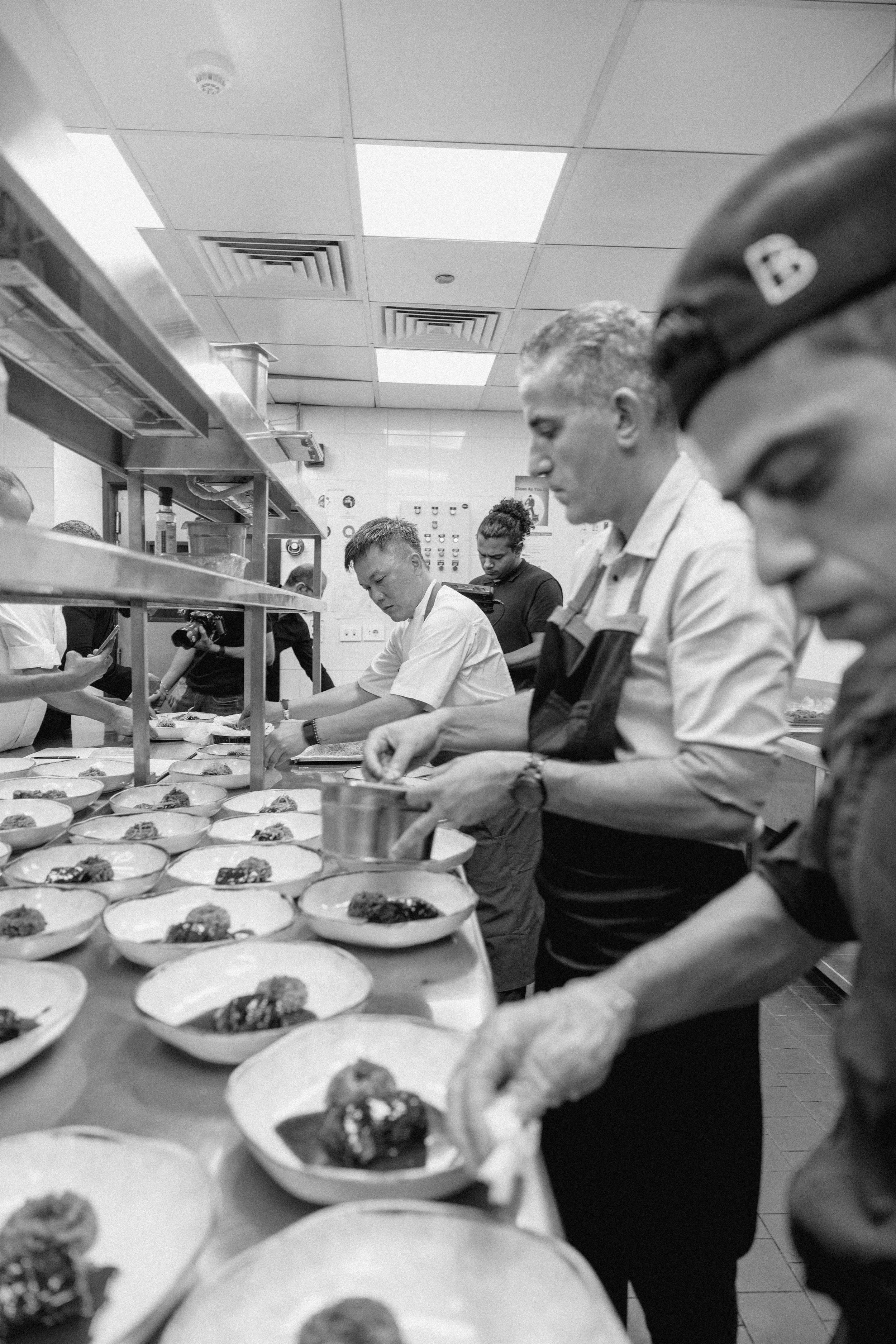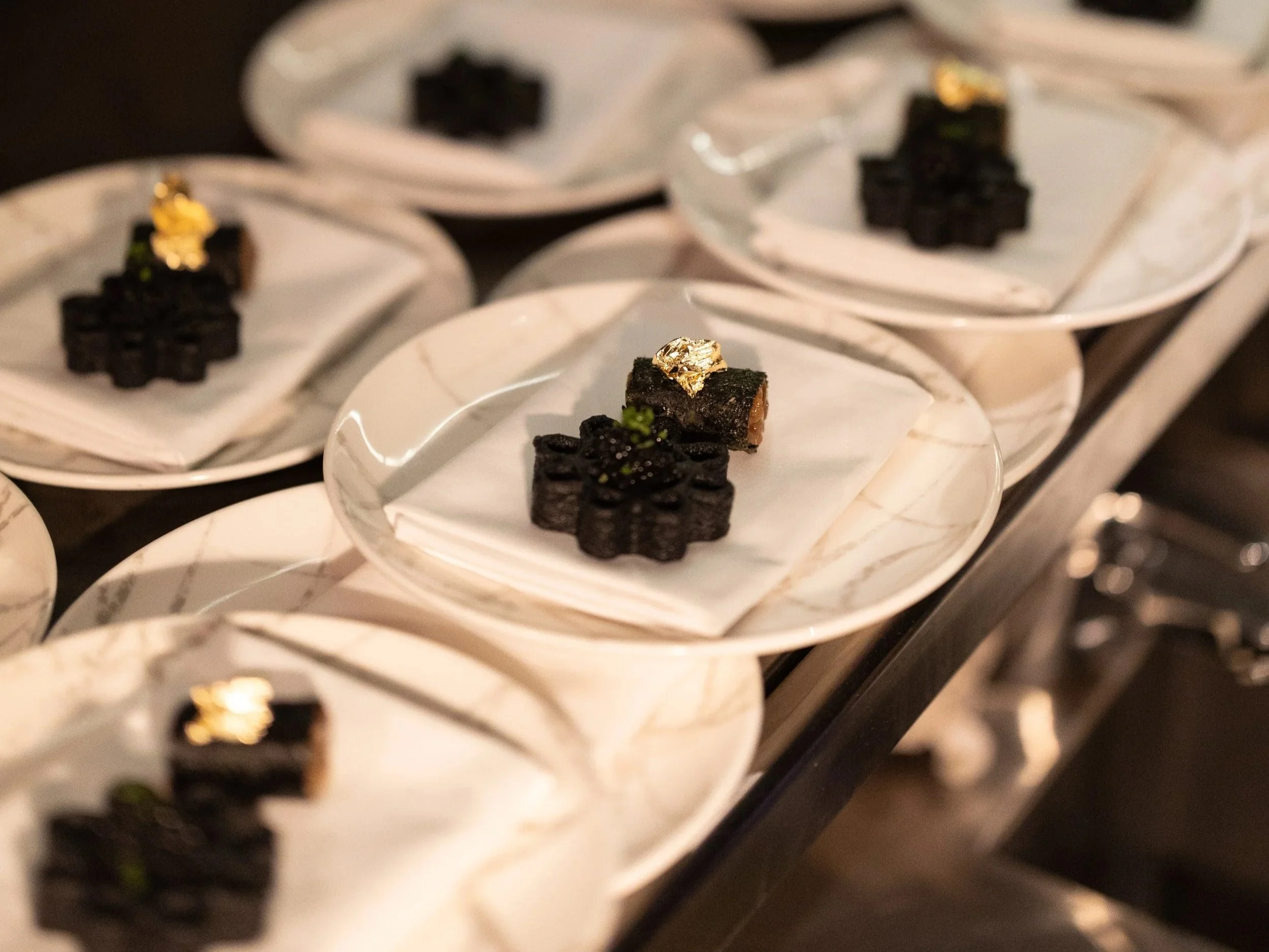 The evening's main composition was an epic tasting menu, a meticulous journey showcasing the distinct yet harmonious styles of the two chefs. The first words were spoken in unison with an Amuse Bouche duo: a crisp cracker topped with cauliflower purée and imperial caviar, alongside a rich date maguro otoro tartare. The conversation then began in earnest. Chef Ali presented a pristine Sushi Moriawase Bento Box, an elegant showcase of his precision with jewel-like pieces of aka-ebi with tobiko mayo, hotate with fresh truffle, and tai with oscietra caviar. Chef Reif countered with a study in decadent comfort: Satsuma Gyu and Date Maguro Otoro, featuring a perfectly executed beef katsu sando and a rich, marbled bun.